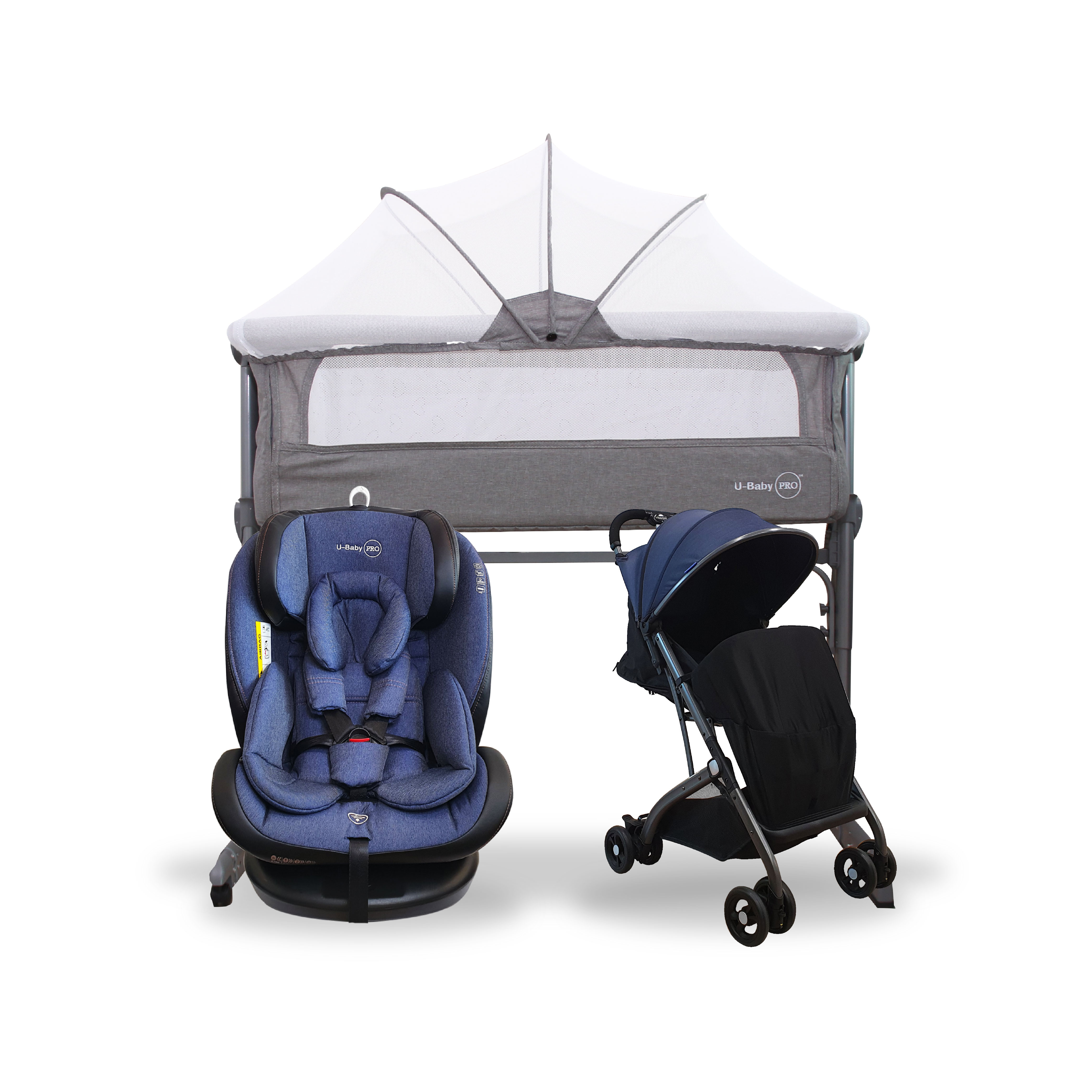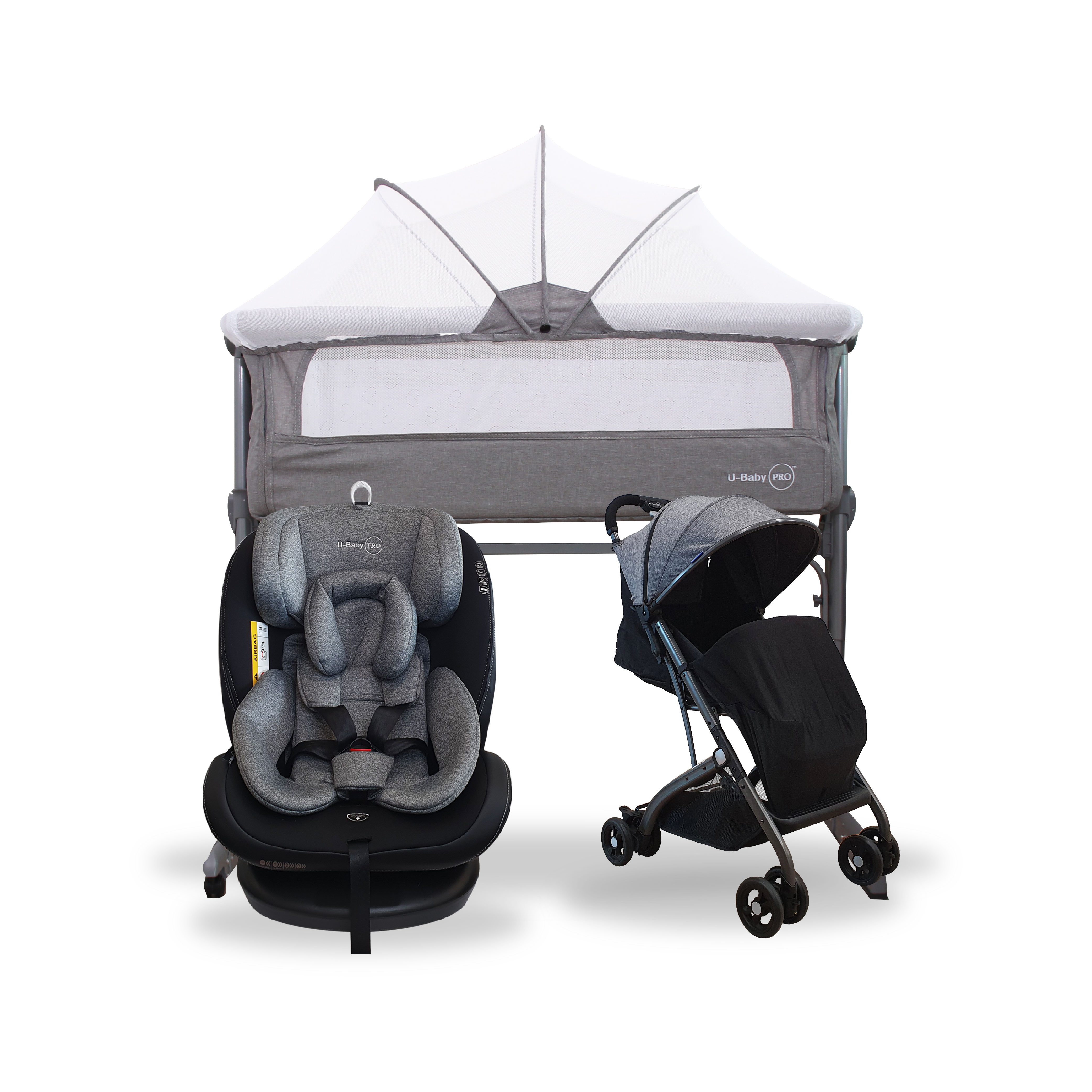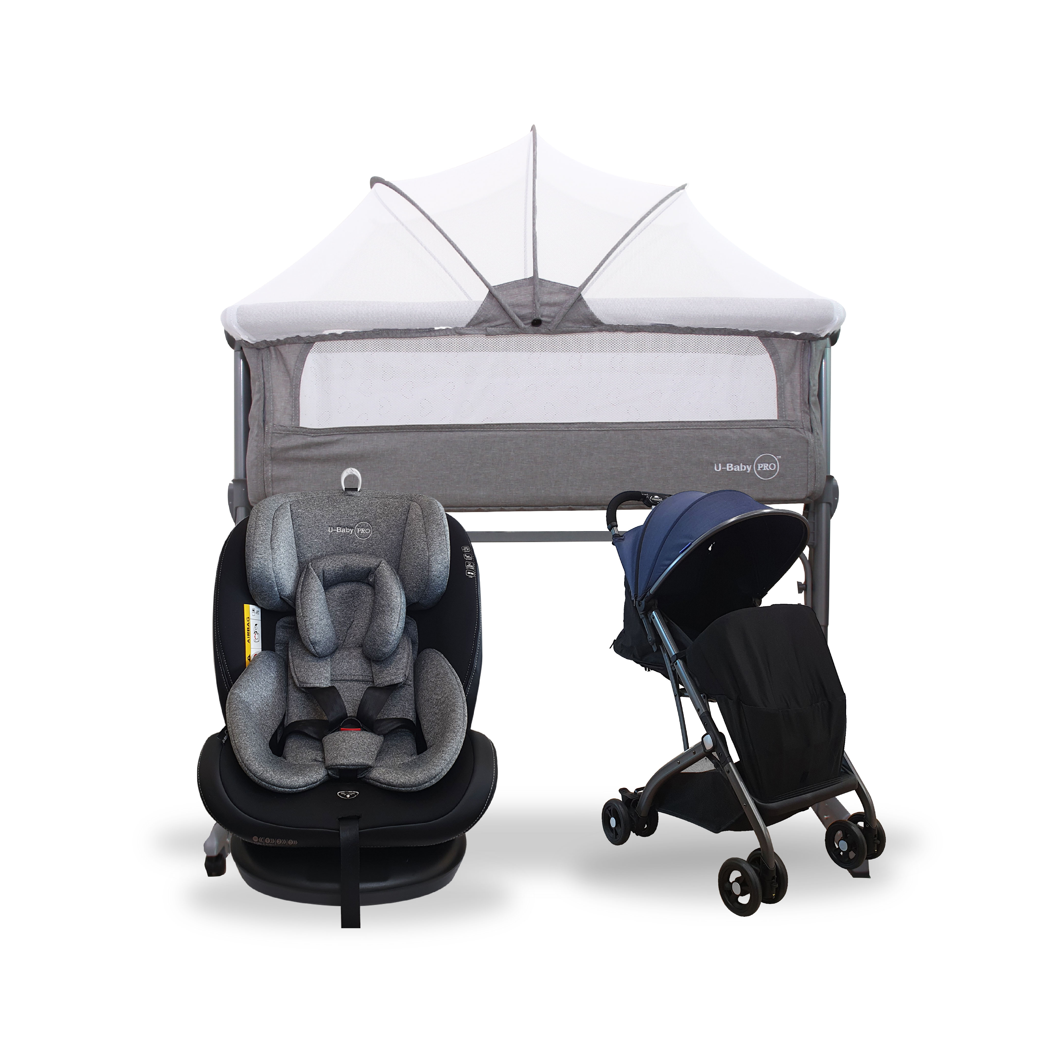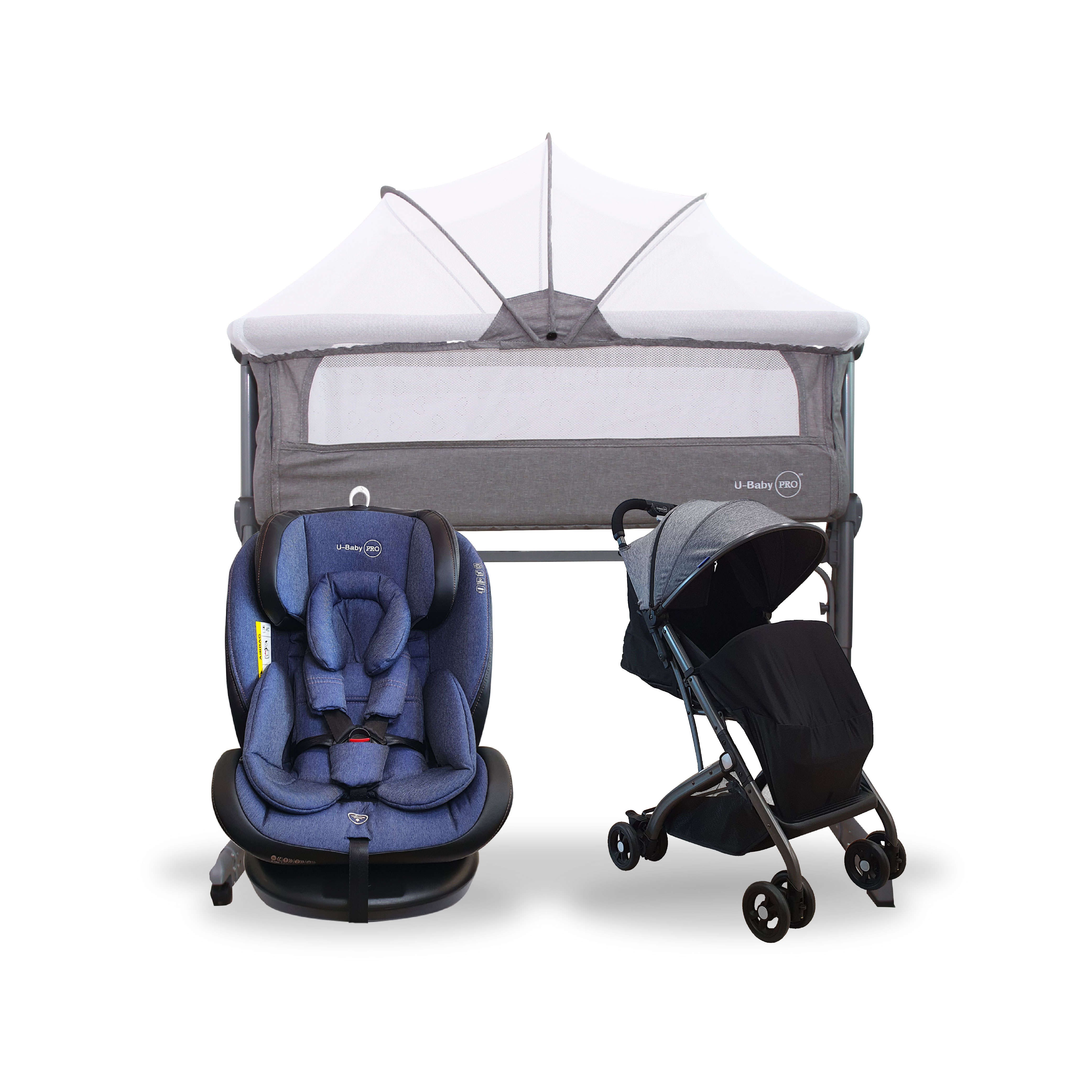 U-Baby PRO UW-CS 03 NEPTUNE ISOFIX Car Seat + UW-ST C008H Reversible Stroller + UW-CT 106 Bed Side Crib