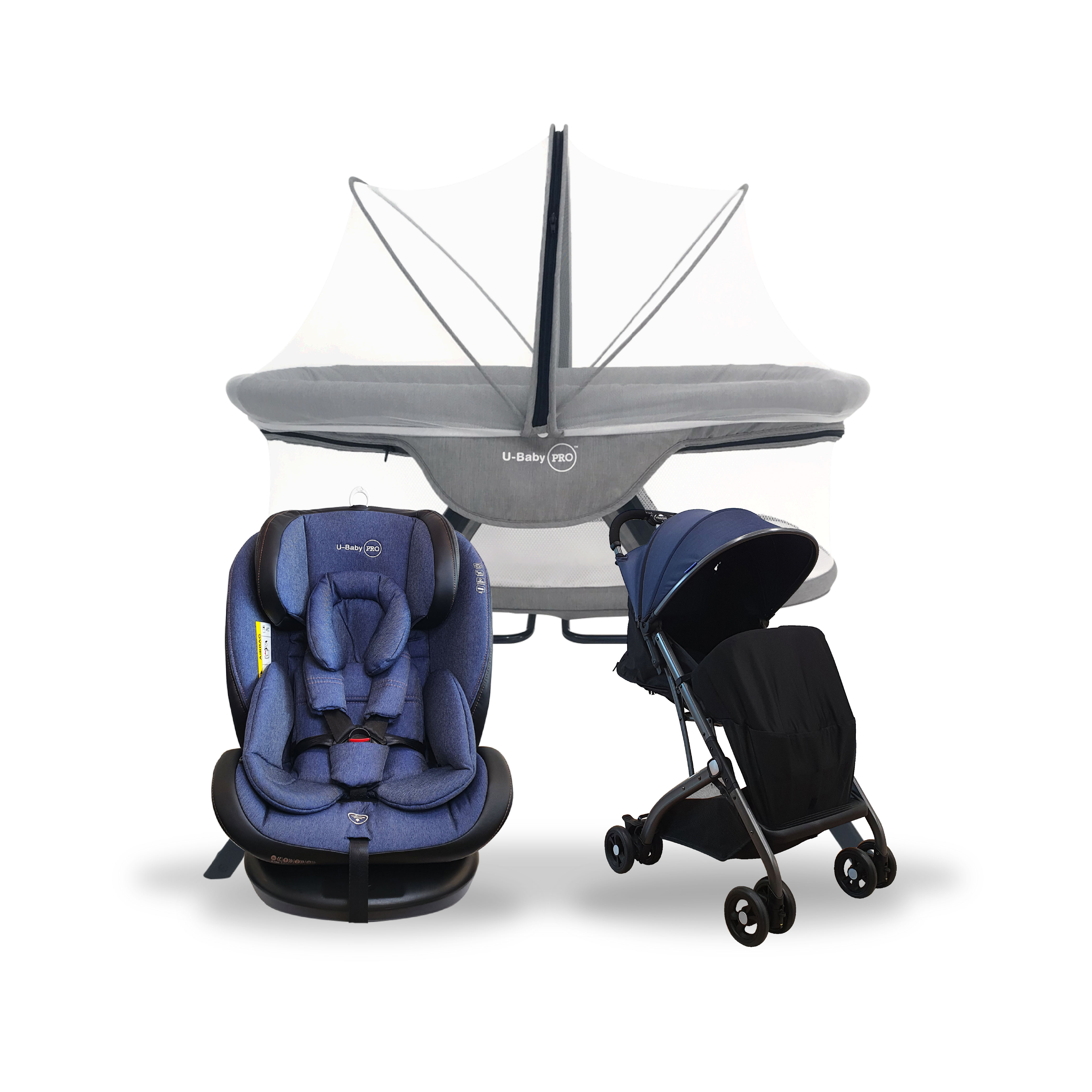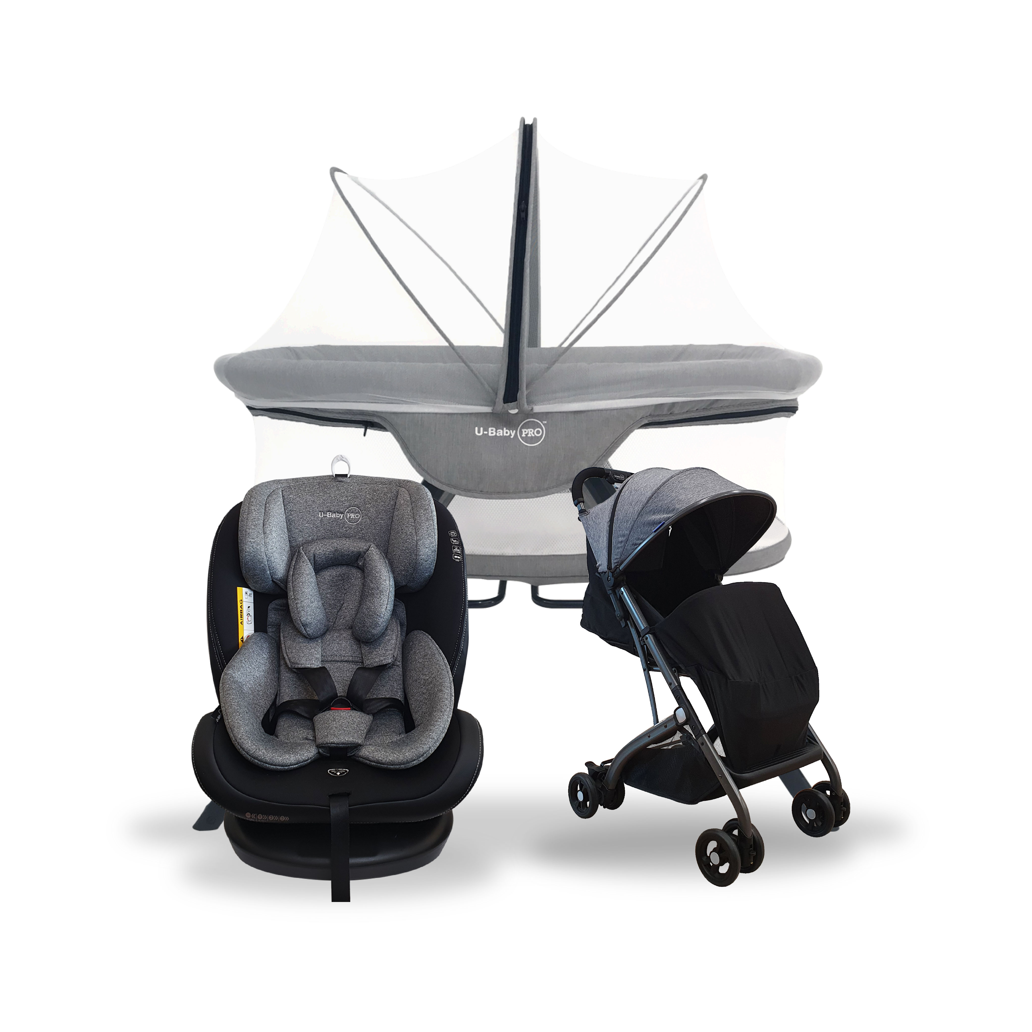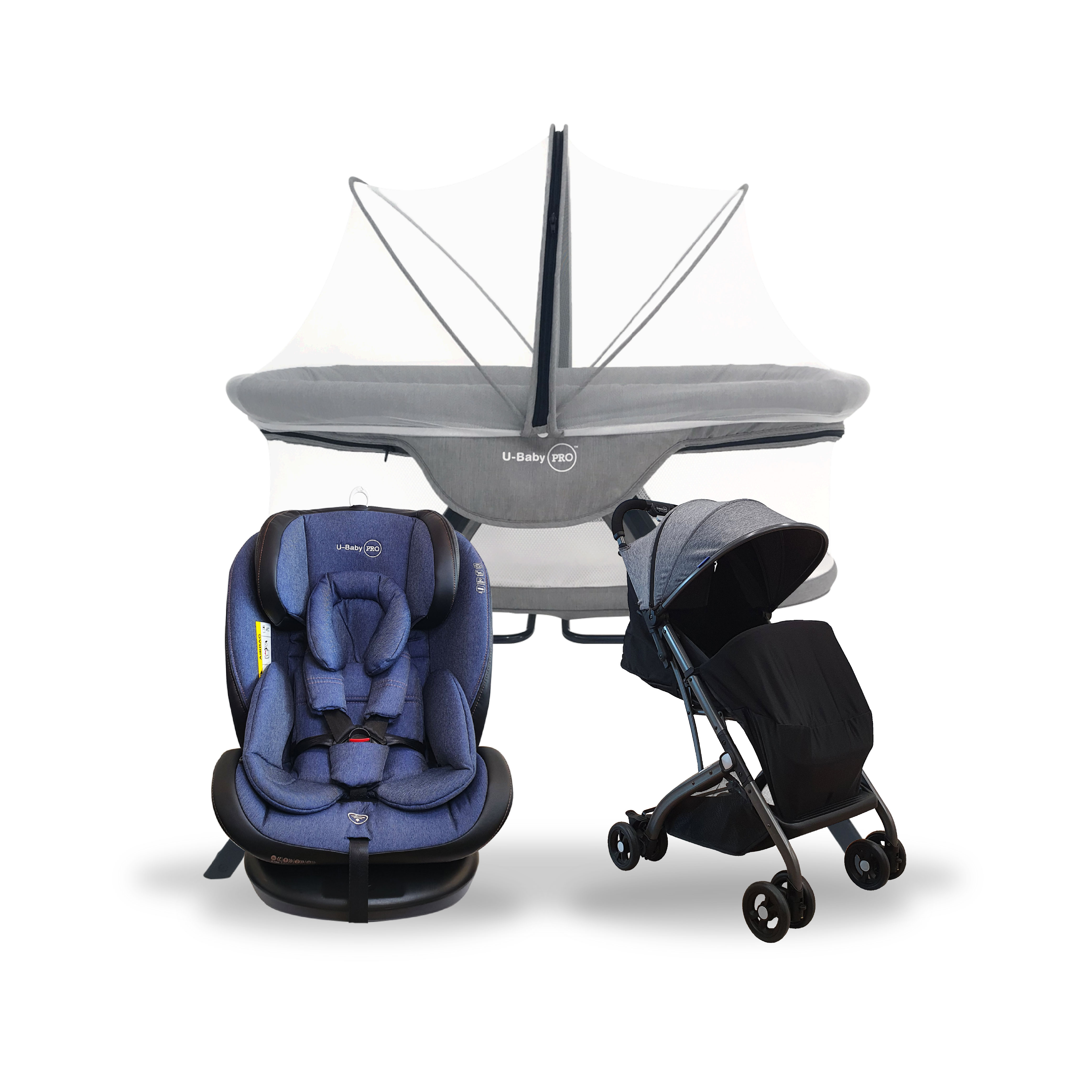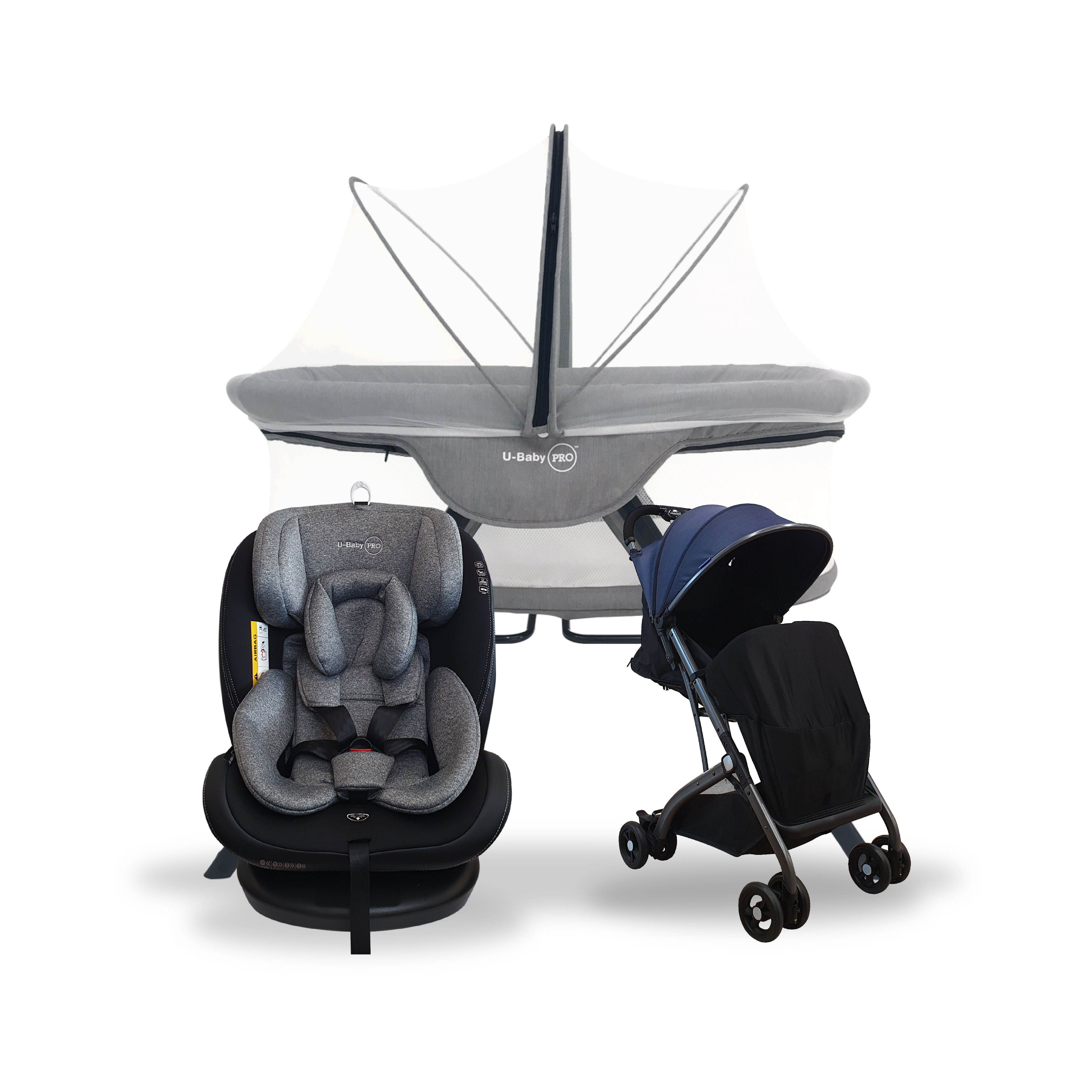 U-Baby PRO UW-CS 03 NEPTUNE ISOFIX Car Seat + UW-ST C008H Reversible Stroller + UW-CT 768 Multifunction Foldable Baby Cot
